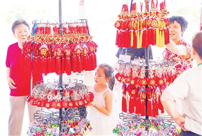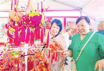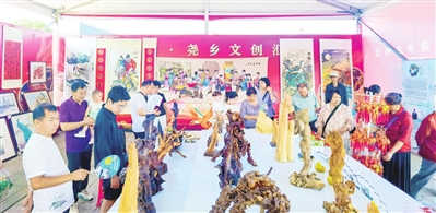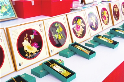 文创展销区,一幅幅剪纸作品将千年故事浓缩于方寸之间:精卫填海的神话场景通过精细的刀工得以生动展现,尧乡古韵的建筑剪影则凭借细腻的线条勾勒而出,神话与历史在红纸间静静流淌。一旁的麦秆画同样引人注目,经过熏、蒸、烫、漂等多道工序精心处理,麦秆在匠人手中化作层峦叠嶂的山水画卷和憨态可掬的民俗人物形象。麦秆天然的金黄纹理与巧妙的构图设计相映成趣,尽显乡土材料的独特艺术魅力和张力。游客们穿梭于各个摊位之间,或俯身细细品味作品的精妙细节,或与摊主热切交流,探寻这项技艺的历史渊源,使得传统手工艺品在观赏与互动交流中焕发出新的生机与活力。