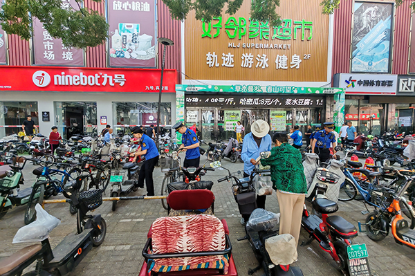 自文明出行专项行动开展以来,潞城区城市管理综合行政执法局紧扣“规范秩序、便民惠民”主线,以规范占道经营和非机动车规范停放为重点,通过“疏堵结合、温情引导”的柔性执法模式,推动城市面貌持续改善,让文明之花在街巷间绽放。 在超市、商铺等人员密集的重点区域,执法人员主动与经营者沟通,将车辆逐一归置到划定区域内,确保车头朝向一致、排列整齐,还引导提醒顾客规范停车,形成“执法引导+商户共治”的合力。