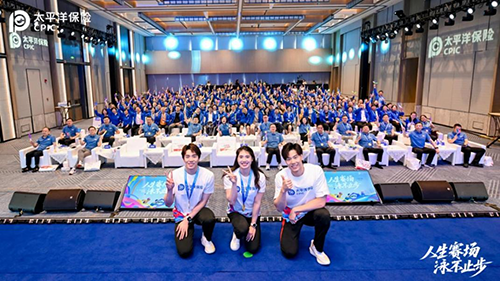 “人生赛场 泳不止步”活动现场 8月24日,由中国太保主办的“人生赛场,泳不止步”——与“太保蓝之队”面对面活动在湖北武汉成功举办。中国游泳队奥运冠军张雨霏、覃海洋、孙佳俊联袂亮相,与来自山东、河南、上海、湖北、江苏、苏州、北京、青岛、浙江、江西等地的300多名太保嘉宾零距离互动,共话拼搏精神,守护全民健康。