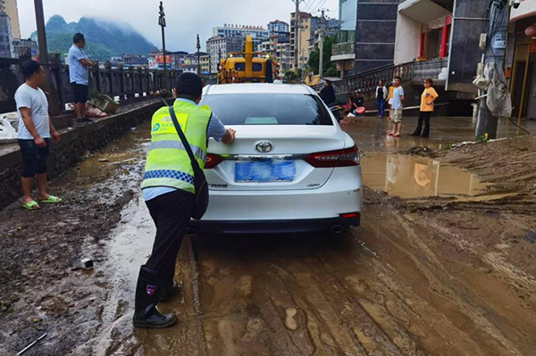 到达现场时,焦急的车主刘先生快步上前:“车子发动不了,这可怎么办呀?”姜鹏程一边轻声安抚,一边迅速排查周边安全隐患。确认群众全部转移后,他毫不犹豫踏进泥水里,奋力一步一步将被困车辆推出积水区。随后,中国太保专属救援车接力,将车辆安全送往修理厂。
