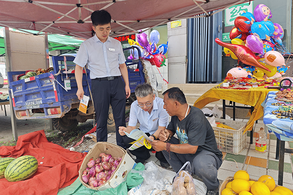 7月23日,清晨的张店镇街道上,吆喝声与脚步声交织成热闹的晨曲,屯留农商银行张店支行“金融服务队”早已行动起来,来到了镇中心大街的集市,一场别开生面的金融知识普及活动就此拉开序幕。