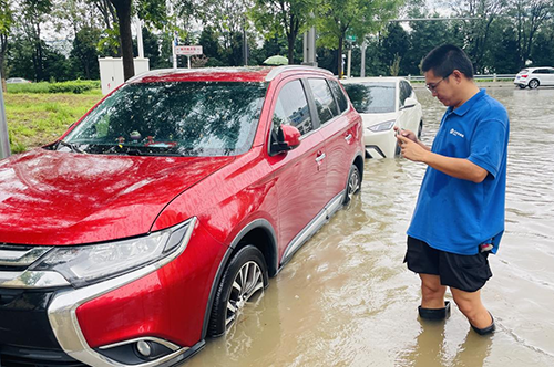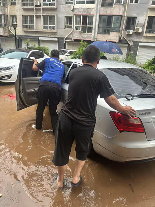 在顺义区河兴北街,中国太保理赔人员王维毫不犹豫地蹚进齐膝深的积水中,深一脚浅一脚地逐个查看路边被水无情淹没的14台车辆。每查看一辆车,他都迅速与车主取得联系,积极协调救援事宜,力求将车主的损失降到最低。当看到附近居民的孩子在积水中嬉戏玩耍时,他心急如焚,立刻停下手中的工作,耐心地劝告家长和孩子远离积水区域,用实际行动守护着每一个人的生命安全。