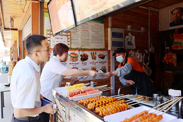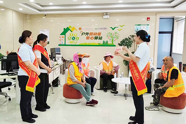 骄阳似火,热浪如潮,夏日的高温将整个城市裹挟进闷热的漩涡,户外劳动者们依旧在烈日下坚守岗位——他们是街头的环卫战士、奔波的外卖骑手、忙碌的建筑工人,用汗水维系着城市的正常运转。作为户外劳动者的 “歇脚地”,长治漳泽农商银行“户外劳动者工会驿站” 始终牵挂着这群可爱的人,近日,该行英雄北路支行开展了“夏日送清凉”活动,用一碗碗亲手熬制的绿豆汤,为他们驱散暑气、传递关怀。