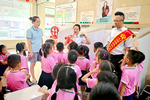 近日,潞城农商银行世纪支行与潞城区昌盛幼儿园联动,为小朋友们精心策划了一场“小小银行家”活动,普及金融知识,培养小朋友们的金融意识和防诈骗能力。 活动当天,小朋友们排着整齐的队伍,带着好奇与兴奋走进银行大厅。