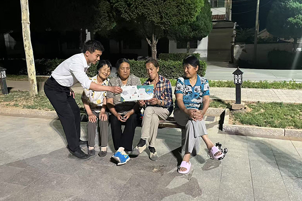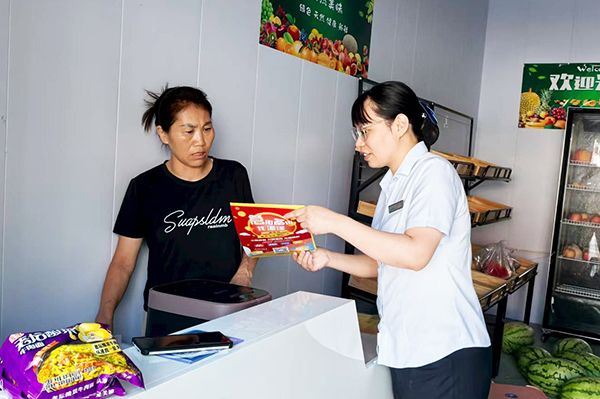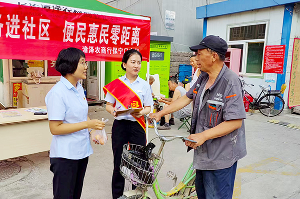 近日,长治漳泽农商银行保宁门支行组织员工走进周边今典小区,开展了“金融服务进社区,便民惠民零距离”主题活动,将金融服务送到居民家门口,用汗水诠释责任,以行动践行初心。 活动中,该支行员工一边为居民递上清凉饮品,一边耐心讲解金融知识。