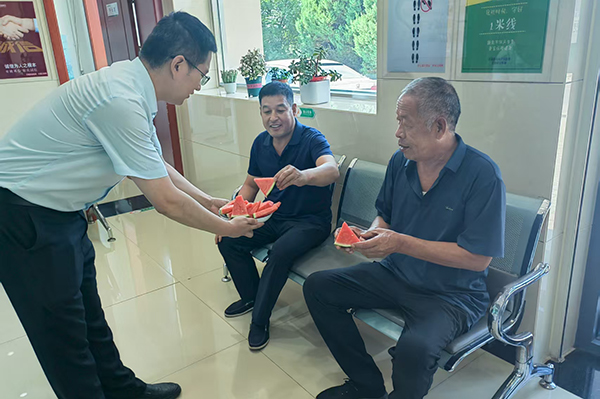 盛夏时节,烈日灼灼。为进一步弘扬环卫工人的无私奉献精神,营造全社会尊重、关心环卫工人的浓厚氛围,近日,武乡农商银行主动将服务延伸至一线,精准聚焦辖内环卫工人的实际需求,精心组织了一场特别的“上门服务”,以实际行动践行“金融为民”的初心,向默默奉献的“城市美容师”致以崇高的敬意。