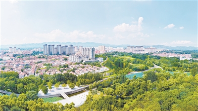 9月1日,黎城县城蓝天白云,青山叠翠,生态优美。近年来,该县积极实施城市更新行动,通过优化总体布局、拓展城市框架、加强公共基础设施建设、增加市民活动空间等一系列举措,完善城市功能,提升城市品质,不断增强人民群众获得感幸福感。(张国平 摄)