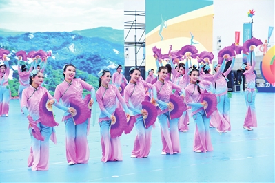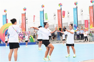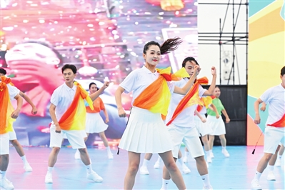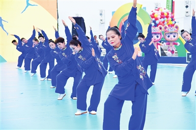 仪式现场,精彩轮番上演,尽显地方特色与体育活力。广场舞《山西嗨起来》《醉美三晋》接连登场,舞者们踏着欢快的节奏,以优美舞姿和热情表演,生动呈现出山西的风土人情与百姓的幸福生活;花样跳绳集体表演《跃动长治》令人耳目一新,队员们配合默契,队形与跳绳花样不断变换,灵动的身影与跳跃的节奏完美融合,展现出青少年朝气蓬勃、活力四射的精神面貌,赢得观众阵阵喝彩;健身气功《神韵太行》则风格舒缓,表演者动作舒展柔和、气韵贯通,于一静一动之间传递出传统气功的深厚底蕴与独特魅力;最后,健身舞《我在长治等你》以悠扬旋律搭配动感舞姿,既向现场观众传递出长治的热情好客,更向全省人民发出共迎省运、相聚长治的诚挚邀约。