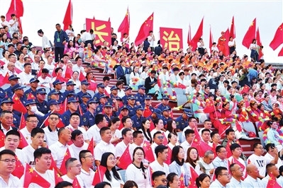 漳泽湖畔,秋风送爽。8月26日,市滨湖文旅服务中心城市阳台波光潋滟,各界群众齐聚于此,共同期待并见证长治与山西省第十七届运动会的深情相约。