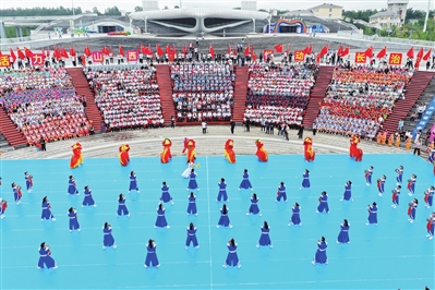 8时18分,激昂的鼓乐声划破长空,在数百名观众阵阵欢呼声中,山西省第十七届运动会倒计时一周年启动仪式正式拉开帷幕。
