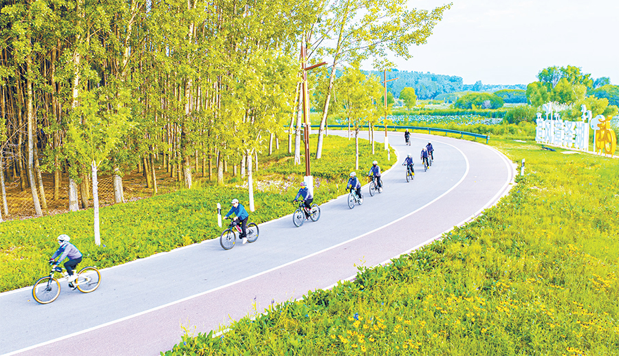 8月15日,潞州区堠北庄街道张祖村,骑行爱好者在太行一号旅游公路潞州段骑行,享受运动快乐。近年来,长治市加大漳泽湖生态修复与保护综合治理,构建水城共融城市空间新格局,不断提升市民获得感、幸福感。(郭世虎 摄)