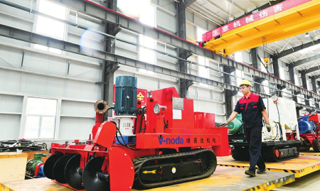 图为位于长子经开区的山西唯诺达机电设备有限公司智能矸选、清仓机及绿色充填设备项目生产车间投入运营。徐翔摄