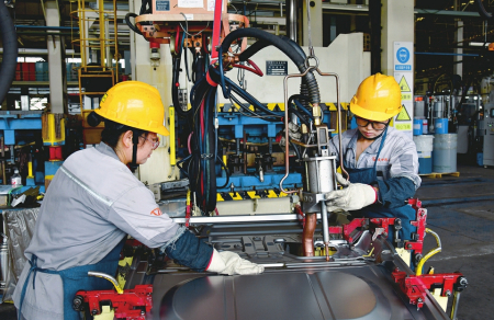 图为山西成功汽车制造有限公司引进先进生产制造工艺和自动化智能冲压、德国DURR全自动涂装等生产线,产品品质得到进一步提升。尚华摄