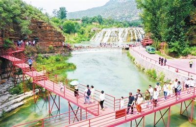 平顺县赤壁悬流景区游人如织