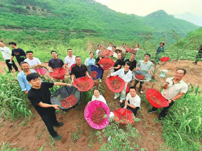 平顺县石城镇党委开展主题党日活动,组织党员干部在遮峪村帮助群众采摘花椒。