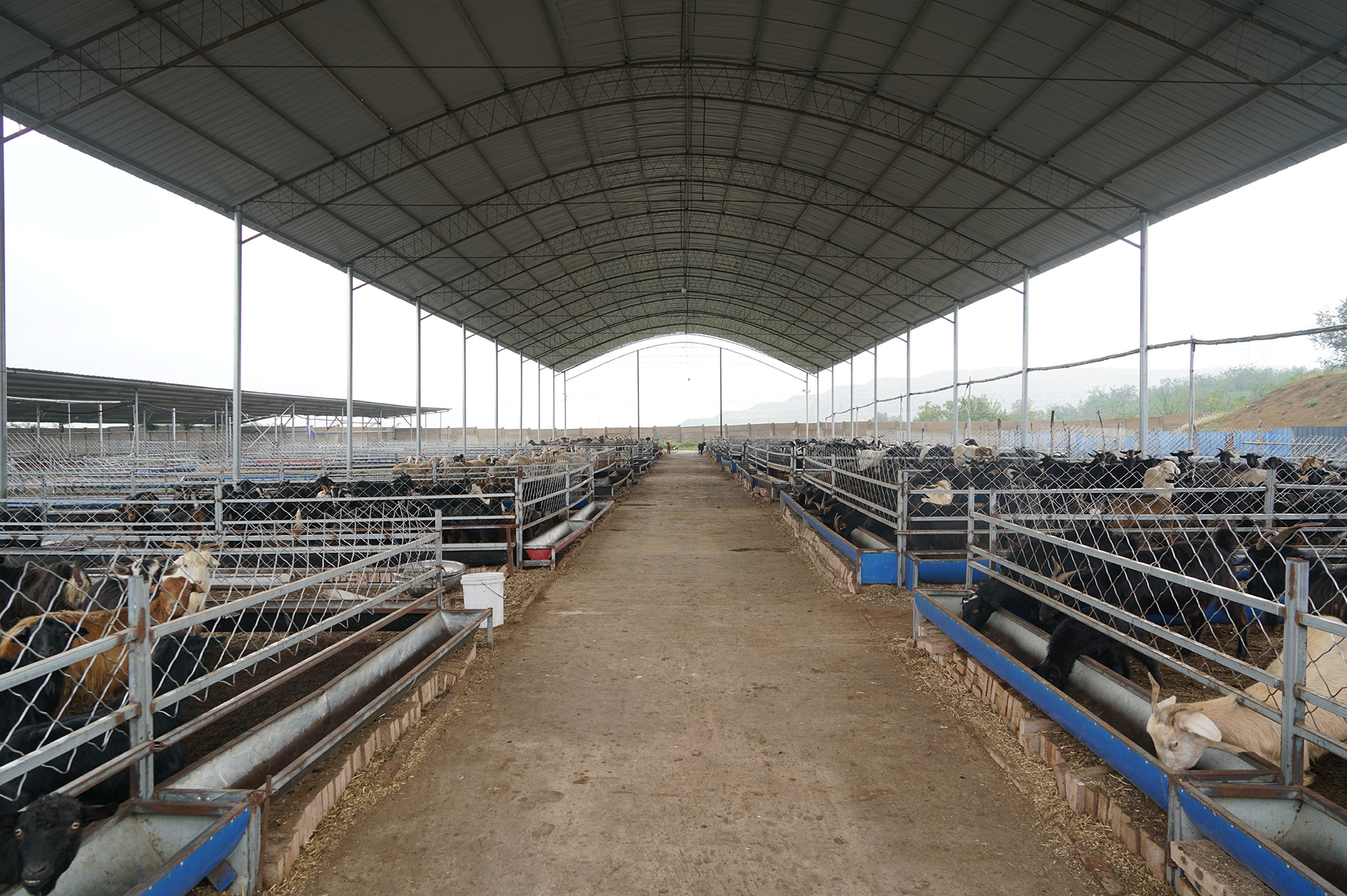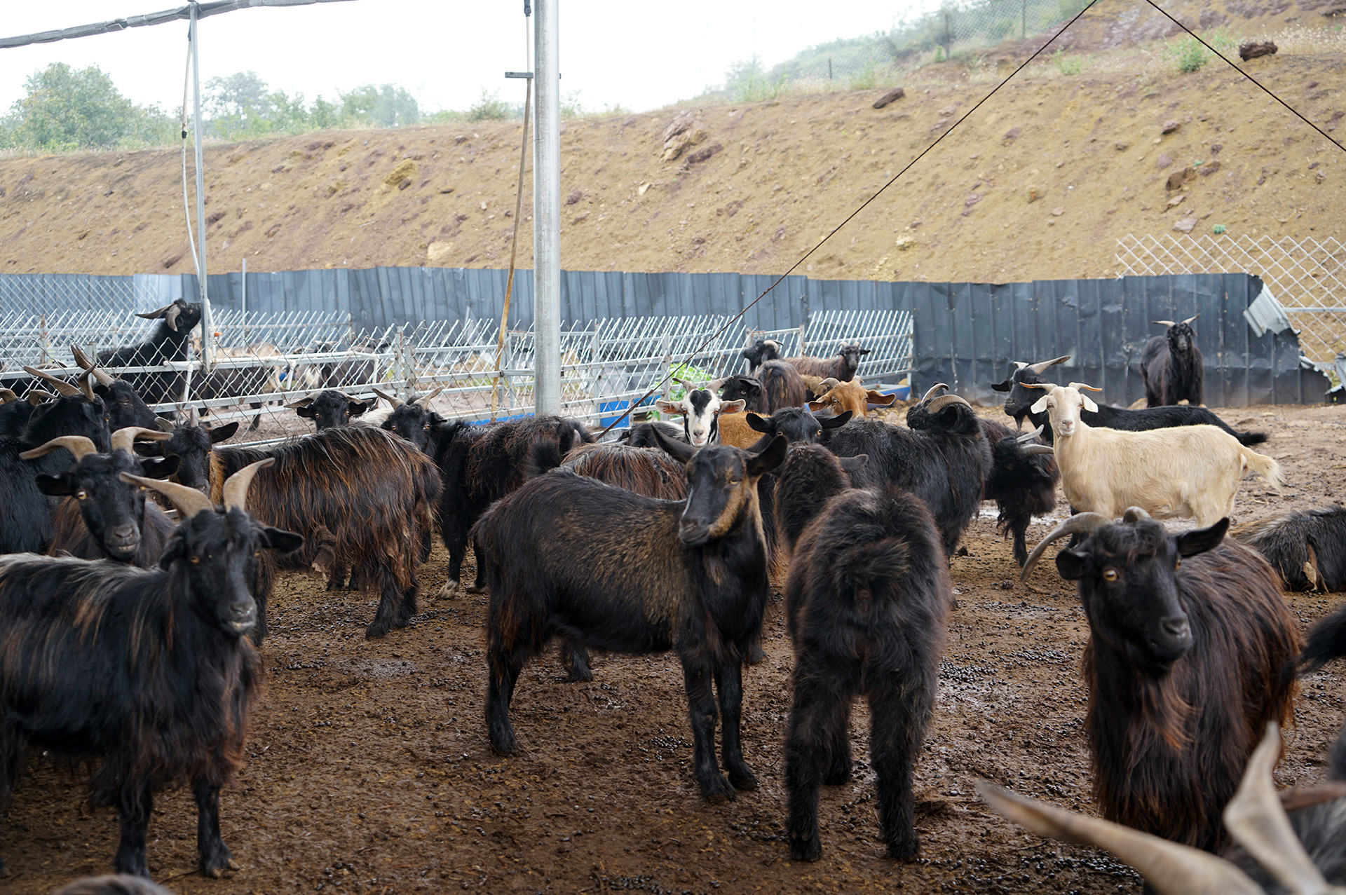秋日的长子县大堡头镇崇仁村土门岭,五十亩荒坡上坐落着一片整齐的现代化羊舍与饲料厂房,黑山羊们正悠闲地低头进食。