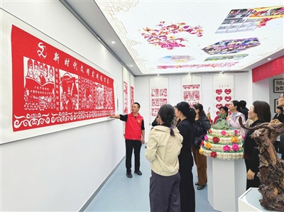 群众在参观剪纸作品展。