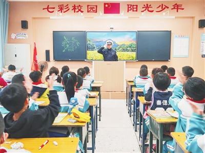 为了让交通安全知识入脑入心,民警还特别设置了“交通标志认知”环节。通过展示常见的交通警示、禁令、指示标志,以“看图识标志”的互动问答形式,充分调动学生的参与积极性,让大家在轻松愉悦的氛围中快速掌握标志含义,强化知识记忆,切实提升学生对交通信号的辨识能力。
