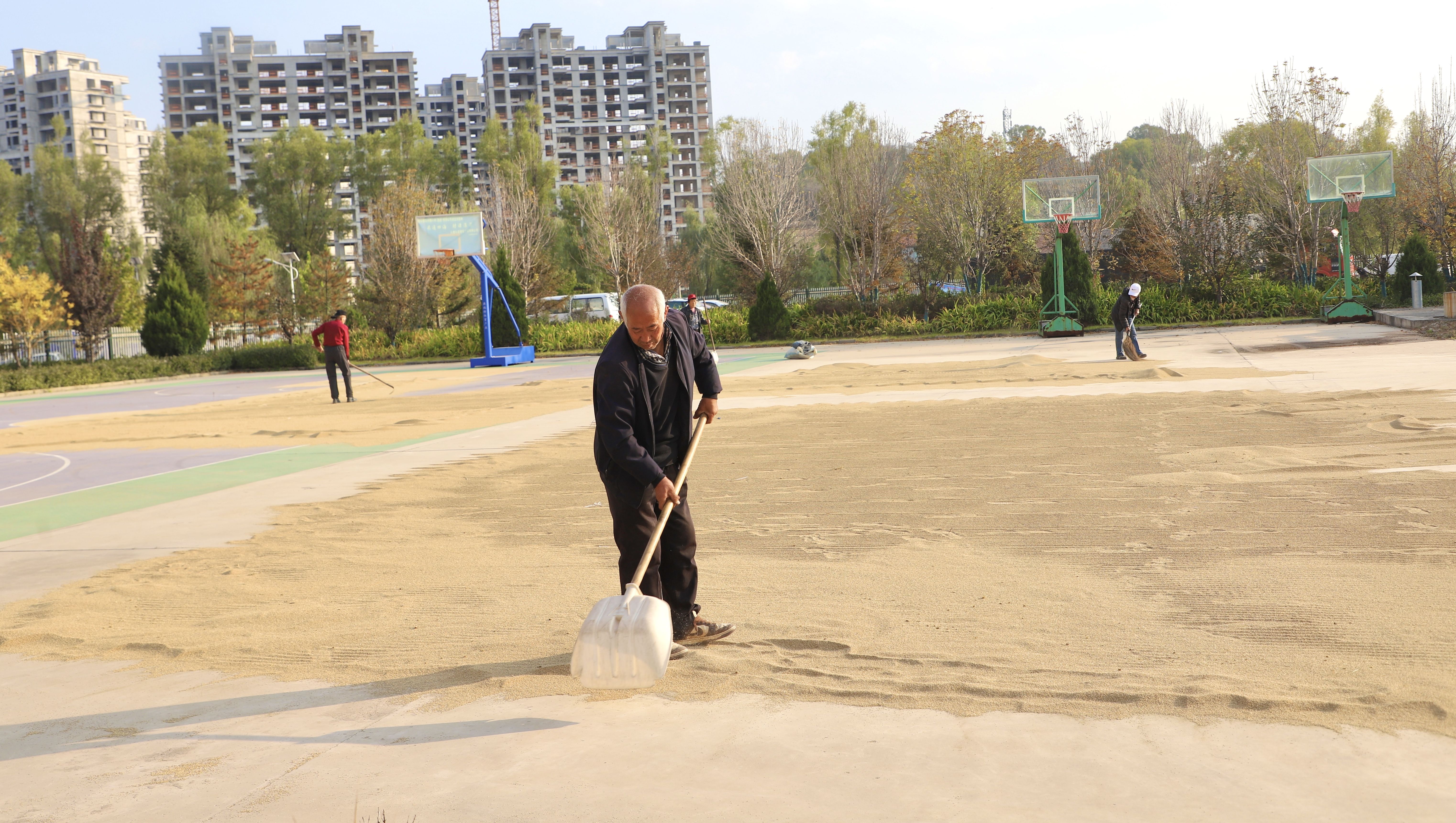 近日,沁县迎来了晴好天气,田间地头抢收抢烘,沁州黄集团公司收购谷子一派紧张忙碌景象。