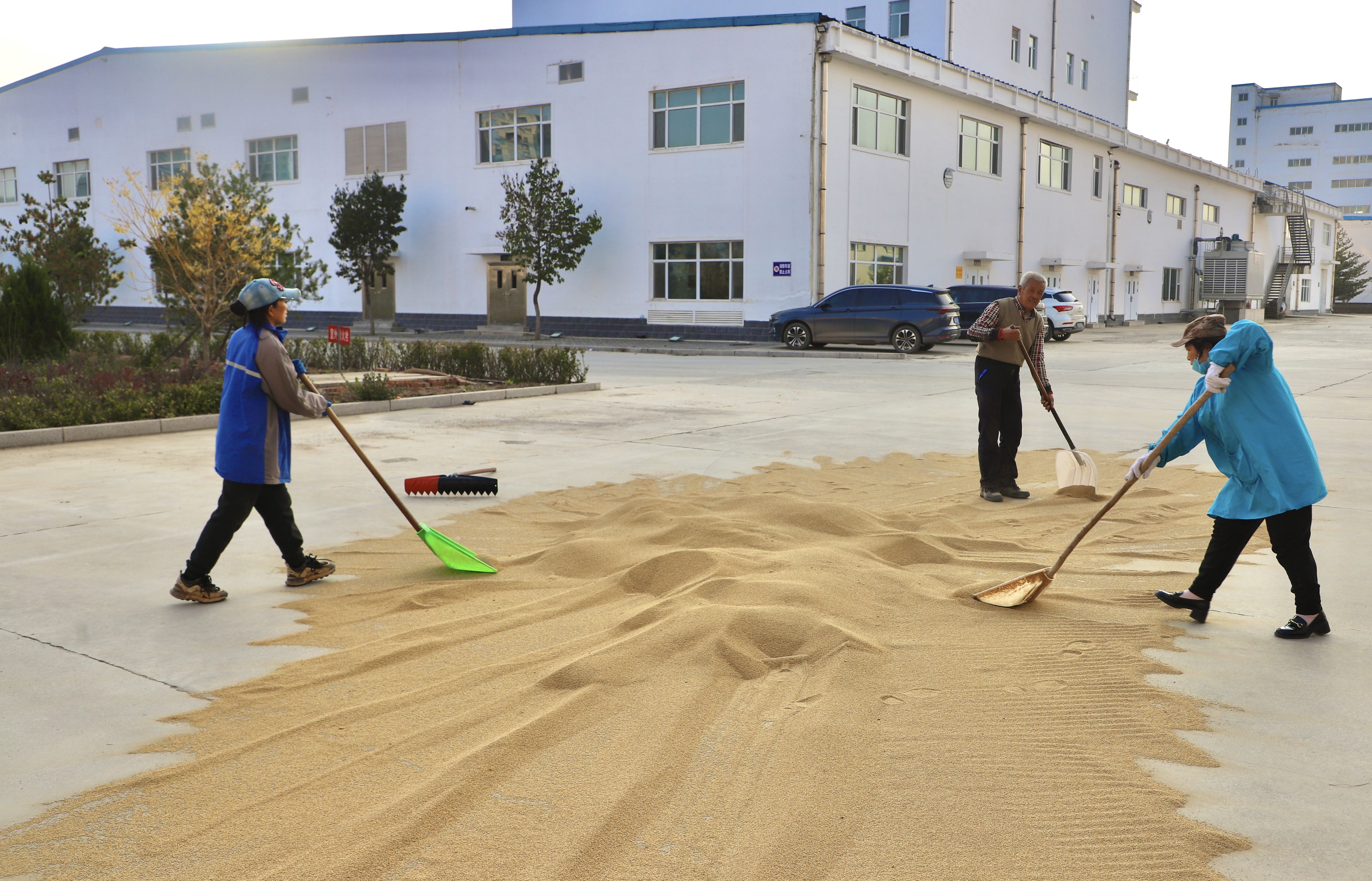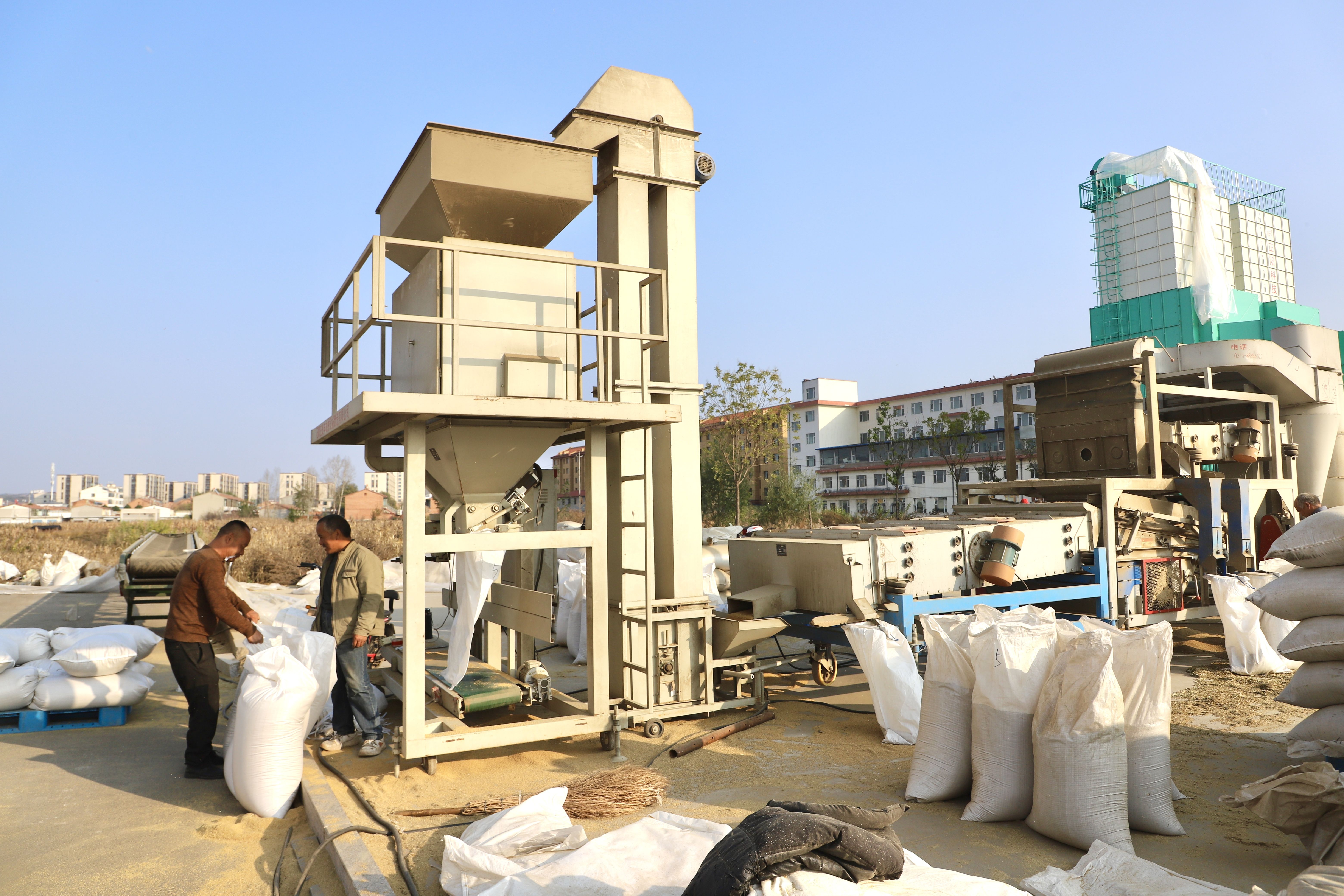 在沁州黄集团公司谷子收购场地,公司员工和谷农们抢抓晴好天气,全力以赴投入收购工作。谷农们争分夺秒,技术服务人员抢抓时间收购,忙碌的身影逐步“追回”秋粮归仓进度。(沁县融媒体中心 供稿)