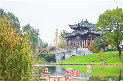 澄澈的漳泽湖面上,波光粼粼,倒映着岸边斑斓的树影与湛蓝的天空。白鹭、野鸭等水鸟在湖中嬉戏觅食,时而展翅掠过水面,激起层层涟漪,构成一幅灵动的生态图景。远处的拱桥横跨湖面,与岸边的亭台楼阁相映成趣,成为市民拍照打卡的热门地点。