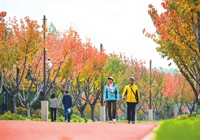 深秋时节,漳泽湖国家城市湿地公园褪去夏日的葱郁,换上五彩斑斓的盛装,漫山遍野的秋意与澄澈湖水相映成趣,勾勒出一幅醉人的生态画卷,吸引众多市民游客前来打卡赏秋。