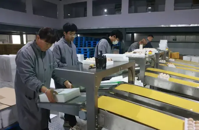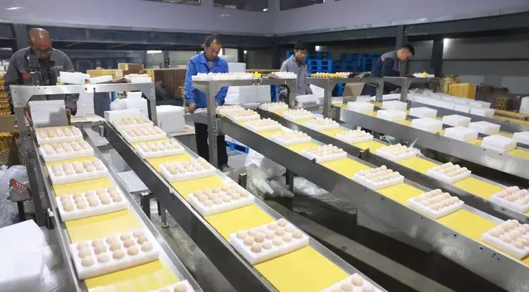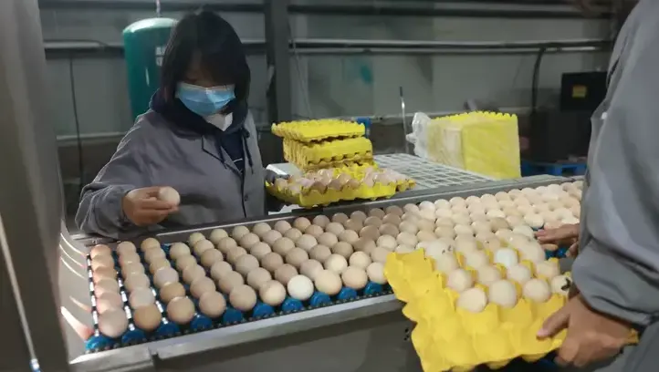 “陈组长,组织好你们小组的人,今天要确保把客户下的订单都打包装好……”走进沁县南里镇北底水村,规模为100万羽蛋鸡智能化标准示范基地的宇辰农业综合开发有限公司,车间负责人胡斐边举着光检仪随机抽查经过荷兰引进SANOVO/萨挪沃鸡蛋分级机包装好的鸡蛋,目光如鹰隼般扫描看是否有裂纹,还不忘叮嘱组长陈玉芬完成好订单任务。