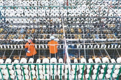 11月10日,位于襄垣经开区的山西省山力铂纳橡胶机带有限公司织布车间,捻线工人正在忙碌生产。近年来,该公司坚持科技创新,持续深耕合成橡胶复合材料领域,对产品精益求精,为行业发展注入源源不断的动能。(张国平 摄)