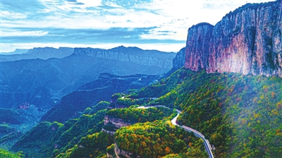 山腰间的旅游公路是最灵动的线条,它盘绕在太行山群山峻岭之间,将殷红的黄栌、橙黄的枫树串成流动的彩练。层层交错的灌木,红黄绿交织,五彩斑斓,光彩夺目,构成了太行山最美丽、最迷人的景色。车轮碾过处,落叶与晨露碎在路面,惊起山雀掠过崖壁的剪影。而武乡板山的路段更像嵌在云端的玉带,一侧是百丈绝壁,一侧是漫山遍野的彩叶,风过时,叶浪裹着公路起伏,连风里都浸着草木的清冽。