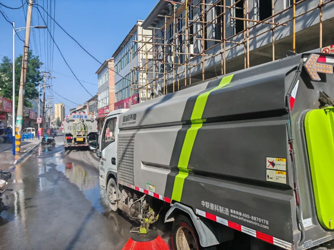 一大早,潞州区城东环卫站的工作人员利用洒水车、机扫车对紫金街道桃园村主街道开展高效机械化清扫,水雾喷洒间,路面尘土被尽数清除,确保全村环境卫生始终保持整洁有序。