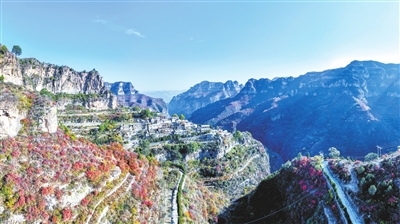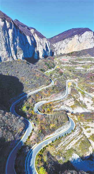 沿着太行一号旅游公路蜿蜒而行,彩虹公路在山谷间盘绕,像给赭色的崖壁系上银带。行至掩映于群山间的太行天路,壁立千仞,幽谷深深,石阶旁的灌木凝着薄霜,与漫山的暗黄、深绿撞个满怀,美不胜收。