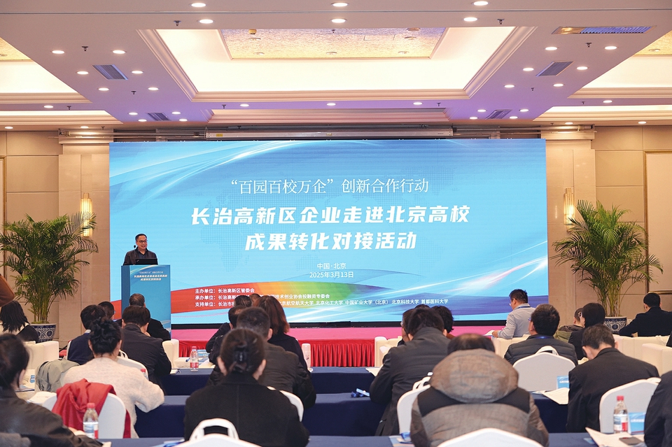 “百园百校万企”创新合作行动长治高新区企业走进北京高校成果转化对接活动现场。