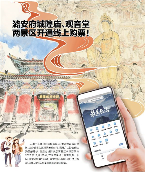 为进一步优化景区服务质量,提升游客出行体验,减少现场购票排队等候时间,满足广大游客便捷购票的需求,潞安府城隍庙景区及观音堂景区自2025年12月1日起,正式开通线上售票服务。市民、游客可搜索“百谷社慧”微信小程序,进行线上购票,购票成功后,在景区闸机处即可核销。