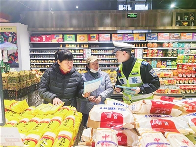 民警给购物群众讲解交通安全知识。 付悠悠 摄