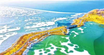 寒风掠过湖面,碎冰轻轻碰撞,发出细碎的声响,一泓澄碧醉太行。阳光铺洒而下,把冰面照得透亮,湛蓝的湖水仿佛一块蓝宝石,在北国的冬日里熠熠生辉。冬日“太行天池”,没有春日的繁花,不见夏日的荷风,却以冰封的澄澈、冷冽的诗意,成了北方冬日里独一份的惊艳。(常珍珍 徐翔)