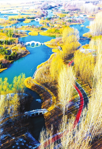冬日暖阳洒在漳泽湖半冰半水的湖面上,与残雪覆盖的芦苇荡、金黄的杨树林交相辉映,勾勒出一幅兼具北国雄浑与江南秀美的生态画卷,成为游客沉浸式体验自然之美的“城市后花园”。