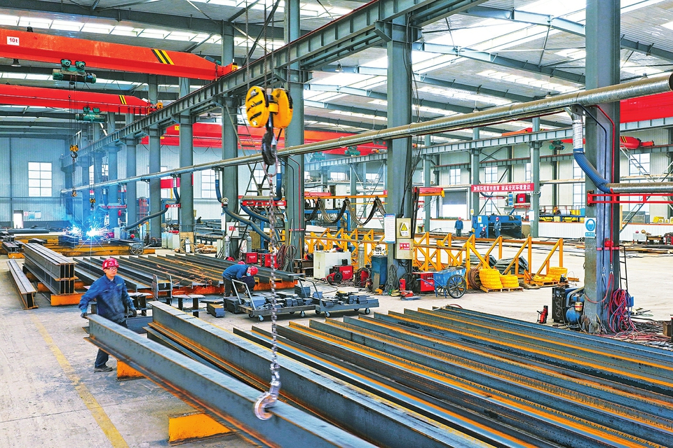 1月5日,长治市华创钢结构工程有限公司钢结构组装车间内,工人们正忙着赶制订单。近年来,该公司新型复合绿色建筑材料项目稳步推进,形成钢结构装配式及新型复合材料全链条服务能力,实现经济效益与社会效益双赢。(张国平摄)