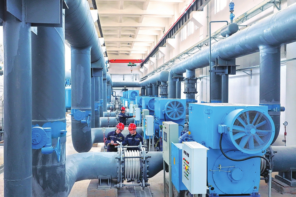 1月8日,壶关县供热隔压站内,技术人员正在实时监测,调试管网压力、水温等参数。随着集中供热热源完成切换,该县供热系统可为县城500万平方米区域提供高效、稳定、清洁的集中供热热源。(张国平摄)