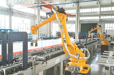 1月15日,位于长治经开区的山西中德塑钢型材有限公司智能化生产车间内,机器手臂正赶制今年首笔海外订单。连日来,该企业开足马力抢进度、忙生产,赶制新年海外产品“第一单”,全力冲刺首季“开门红”。(梁栋摄)