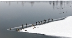 这里不仅是候鸟的“冬日家园”,漳泽湖湿地公园的冰雪景观也吸引了大批游客到访。摄影爱好者聚焦候鸟翩飞的瞬间,艺术家则以画笔描摹冰湖之美。