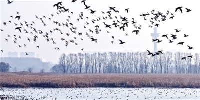 作为候鸟迁徙的重要驿站,漳泽湖湿地公园的未冻水域,成为候鸟冬日栖息的乐园。天鹅身披白羽在冰水间优雅游弋;绿头鸭成群结队在冰缝中觅食嬉戏;灰雁群时而集结湖面,时而振翅腾空,群鸟齐飞的壮观场面与冰封湖景相映成趣。候鸟对生存环境极为敏感,它们的大量聚集,正是漳泽湖湿地公园生态环境持续改善的生动书写。