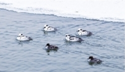 斑头秋沙鸭(熊猫鸭)在湖里游弋