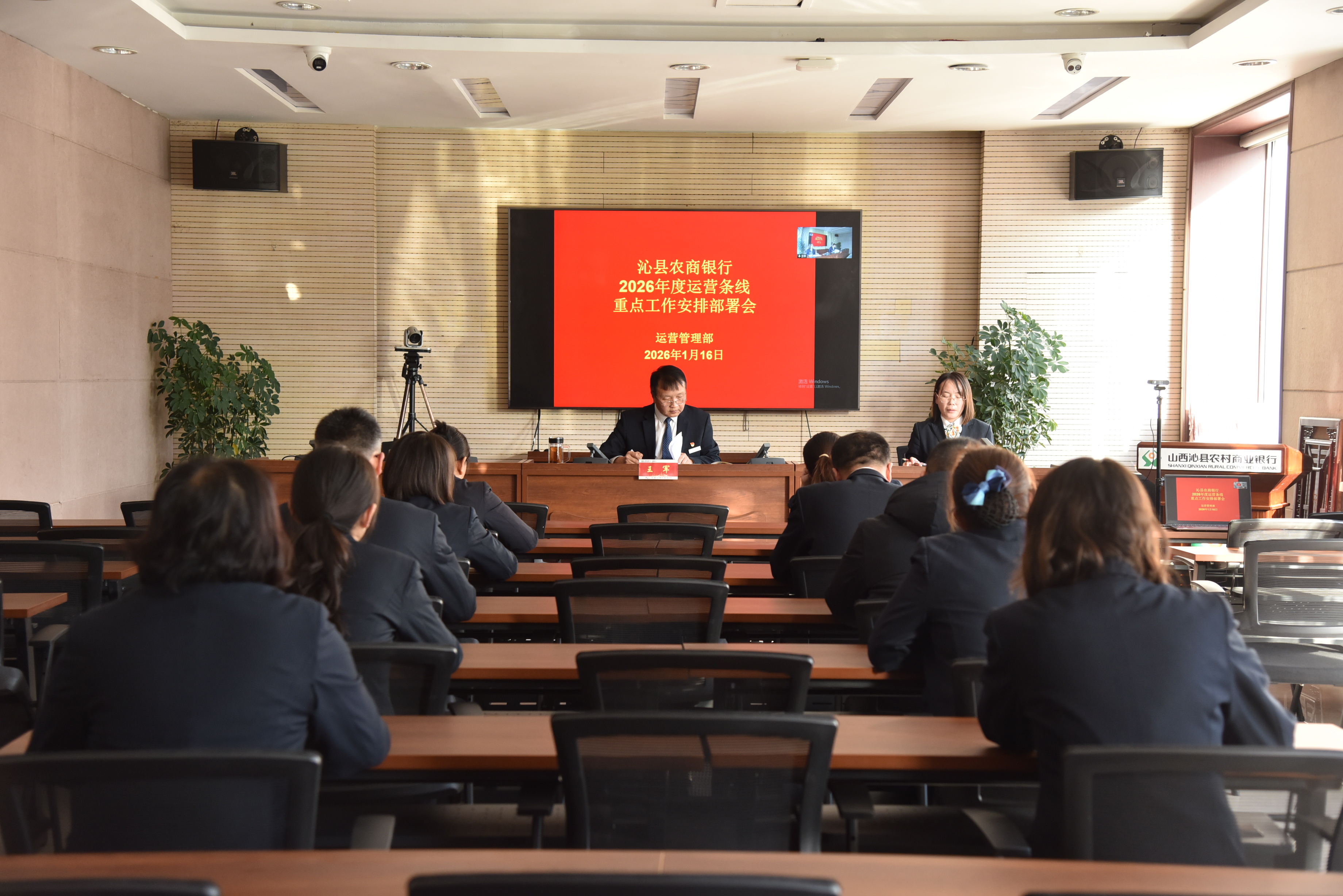 1月16日,沁县农商银行组织召开2026年度运营条线重点工作安排部署会,全面传达贯彻落实长治管理中心近期召开的全市农商银行系统运营与客服工作部署会议精神,并结合该行实际,对下一步运营管理各项重点工作进行安排部署。会议采用“线下+线上”相结合的方式召开,城内网点负责人在主会场参会,乡镇网点通过视频会议同步参会。