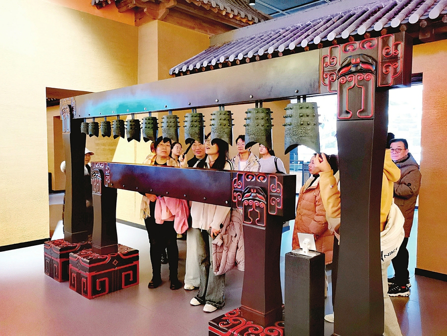 1月14日,游客在长治市博物馆新馆中参与体验项目。王少杰摄