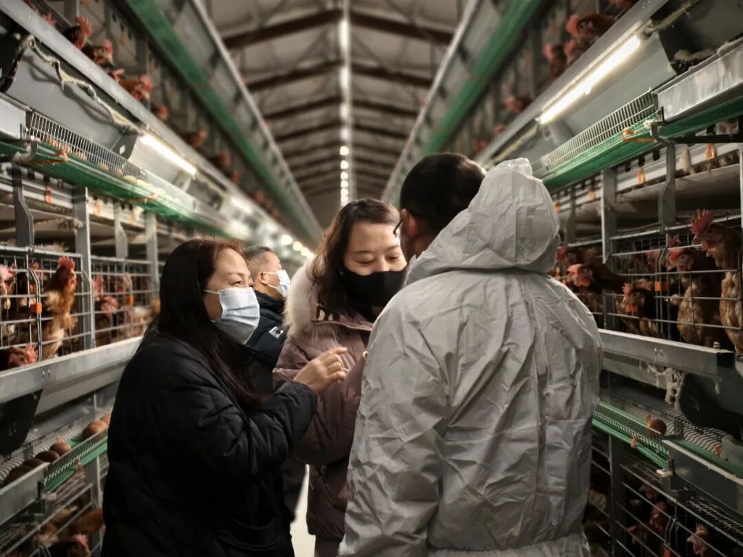 畜禽养殖是寒潮防范的重点领域,低温易导致畜禽患病、产蛋率下降等问题。在长治市立红禽业有限公司养殖基地,3万只蛋鸡健康状况良好,鸡舍内温度适宜、通风顺畅,各项管护工作井然有序。农技专家深入鸡舍,仔细检查供暖系统运行、通风设施配备及日常消毒记录,现场叮嘱养殖人员严控鸡舍温度,保持在13℃以上,同时合理调控通风时长,避免舍内氨气积聚引发畜禽呼吸道疾病。基地负责人也正按照专家指导,逐一排查饲料储备量与供暖设备运行情况,筑牢畜禽防寒防线。