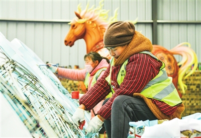 在成品厂房内,各式花灯错落摆放:骏美豪迈的“八骏图”呼应马年主题,家喻户晓的神话故事场景栩栩如生,威风凛凛的上古神兽造型灵动传神,还有诸多寓意吉祥的民俗形象相映成趣。这些历经多道工序精心打造的花灯,正静待新春佳节到来,届时,它们将奉上一场传统与新潮交融的光影盛宴,为群众的春节增添浓浓的喜庆氛围,让年味更浓、欢乐更满。(郭赟 牛子儒)