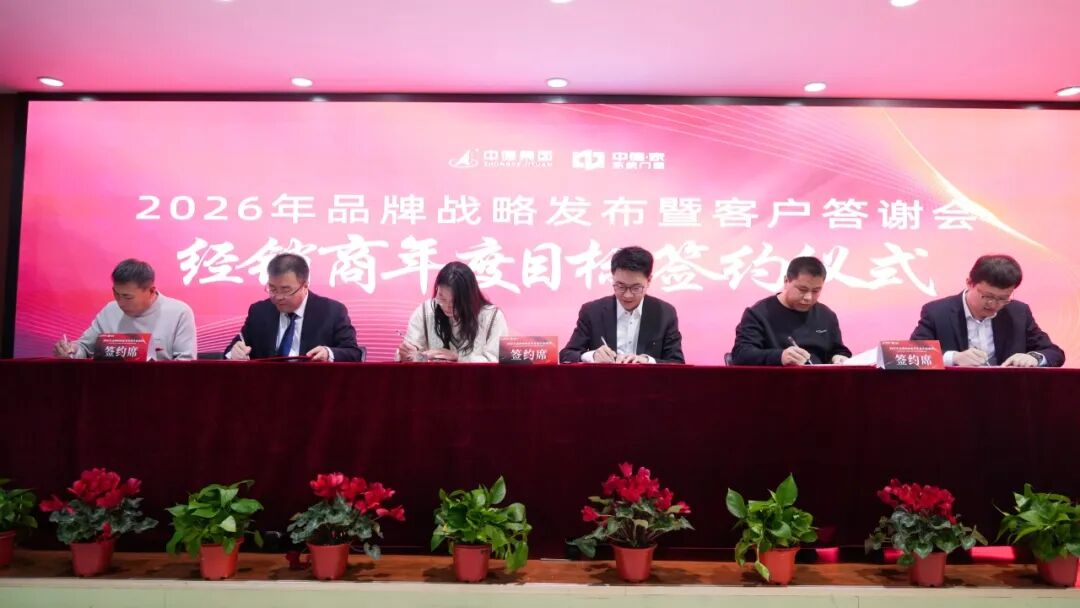合作商签约仪式上,15家合作伙伴与企业完成2026年度目标签约,为品牌2026年市场深耕注入强劲动力。