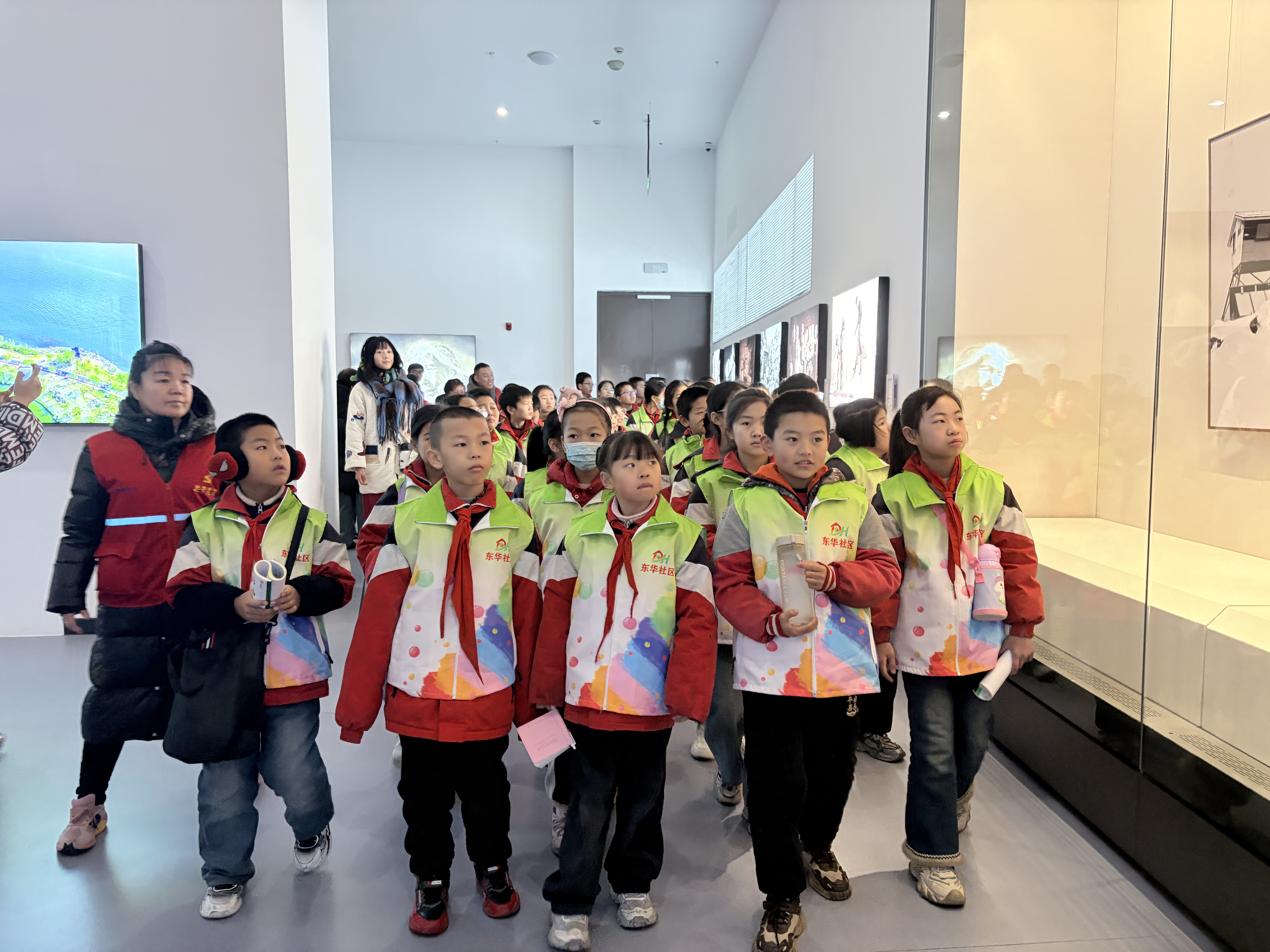 活动中,在讲解员、社区工作人员、学校老师及团区委志愿者的共同引导下,学生们有序参观了基本陈列通史展、东周车马坑、千年琉璃大观等核心展区。从造型古朴的陶器到工艺精巧的琉璃制品,从气势恢宏的东周车马到印记鲜明的古人类生活遗存,一件件珍贵文物吸引着孩子们的目光。大家怀揣好奇与敬畏驻足观看,认真聆听文物背后的历史典故与人文故事,现场互动热烈、求知氛围浓厚,古老的历史文化在孩子们心中悄然萌芽。