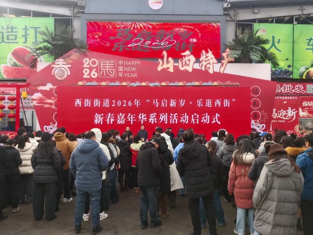 2月3日,西街街道2026年“马启新岁·乐逛西街”新春嘉年华系列活动启动仪式在火车头瓜果交易市场举行,标志着一场融合传统年俗、潮流互动、文旅消费的新春盛宴正式拉开帷幕,为即将到来的丙午马年新春,注入浓浓的烟火气与喜庆氛围。