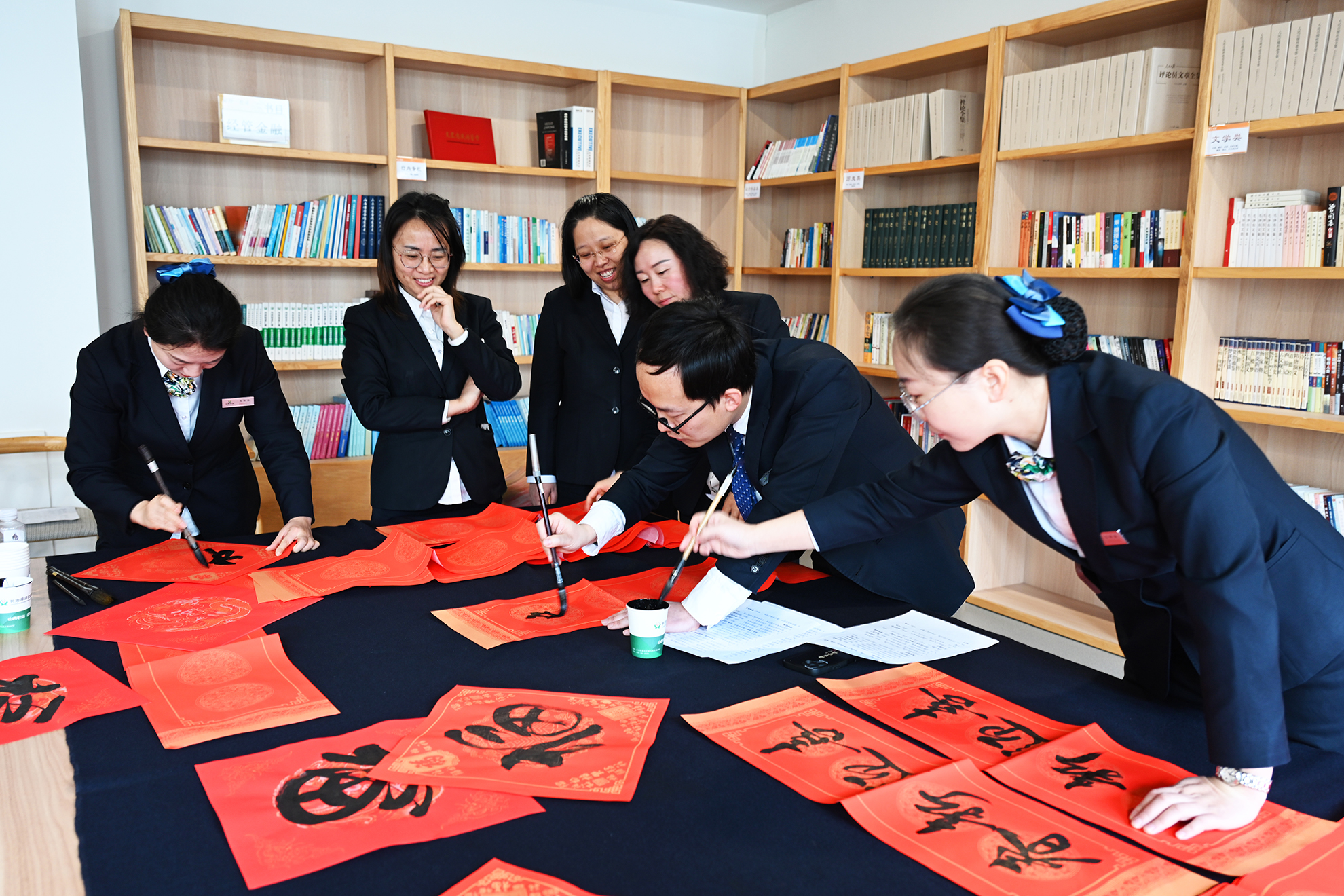 长治漳泽农商银行为进一步传承优秀传统文化、丰富员工文化生活、营造节日氛围,2月5日,该行组织开展了“写春联、送祝福、迎新春”主题活动,行内员工书法爱好者齐聚职工书屋,在笔墨交错中感受传统文化魅力,于静心运笔间涵养心性、凝聚合力,共同为同事们送上新春祝福。